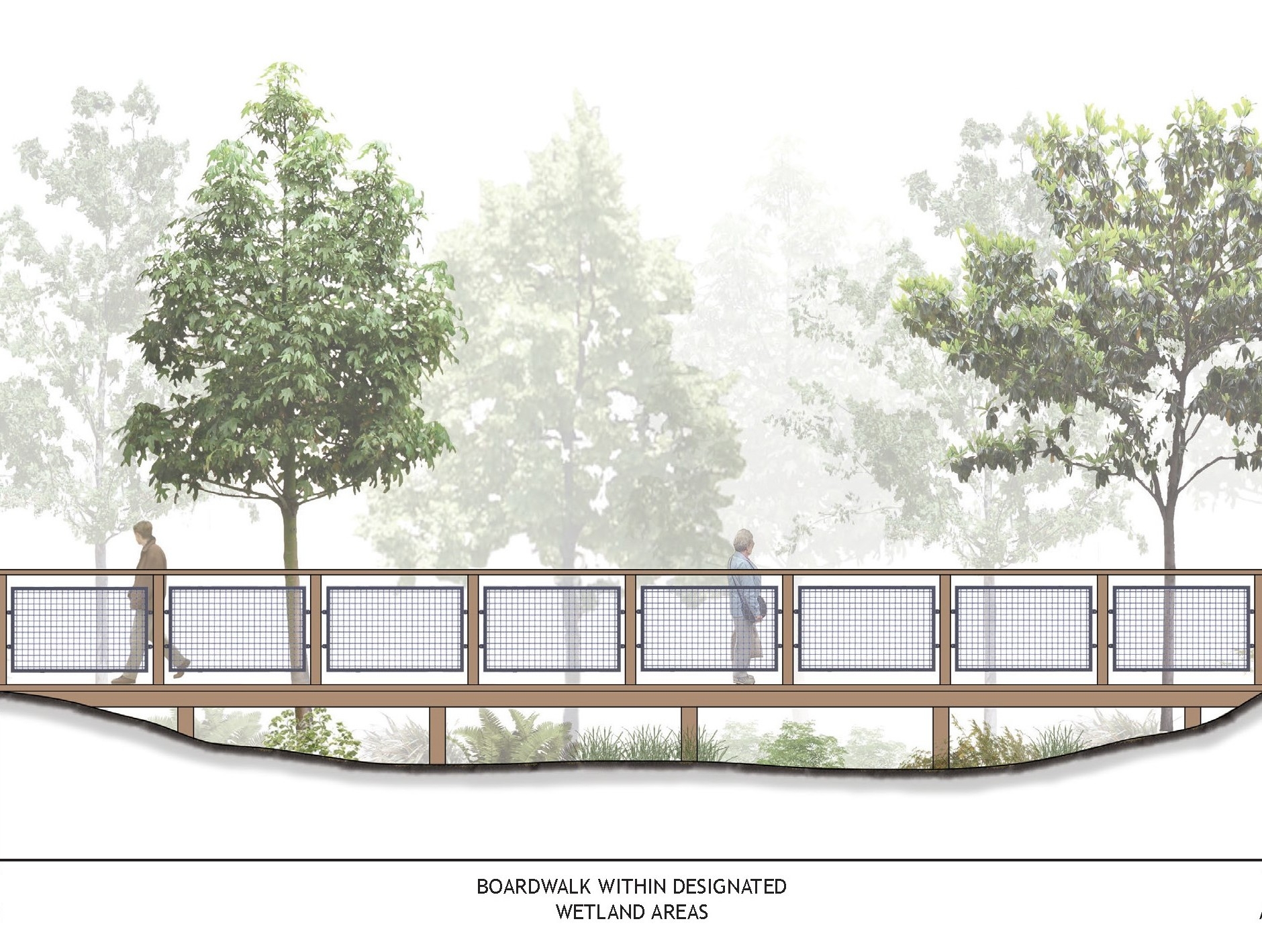 Johnson Hill Land Ethics Studio prepared a comprehensive plan and construction documents for the initial phase of improvements at the Carpenter Lake Nature Preserve. Improvements included nature trails, boardwalks, interpretive signage, and fishing platforms. Support facilities such as parking, trail head improvements, and access controls, were also included. Sustainability was a key component of the design which features pervious pavements, bioswales, and native plantings.